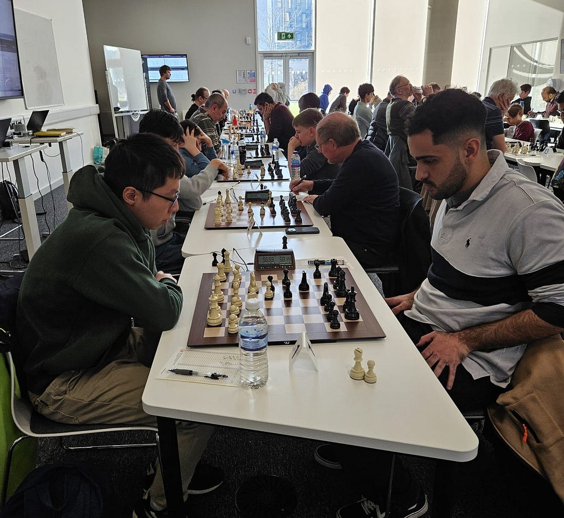 TIME CONTROL The time control is all moves in 60 minutes per player PLUS 30 seconds added per move throughout. This means that we have to restrict the top section to players with FIDE ratings Under 2400, but apart from that… However, whether you're just starting or have years of experience, this tournament provides a welcoming and inclusive environment for you to enjoy the game of chess. ROUND TIMES (you can take a bye on the entry form) Saturday (1) 10.30am to 1.30pm / (2) 2.00pm to 5.00pm / (3) 5.30pm to 8.30pm Sunday (4) 11.00am to 2pm / (5) 2.30pm to 5.30pm GUARANTEED PRIZES In the U2400 and Under 1900 - 1st - £200 / 2nd £100 / 3rd £50 Under 1600 - 1st - £160 / 2nd - £80 / 3rd - £40 Under 1400 ECF (if you have a FIDE standard 1400 or above please enter the Under 1600) - 1st - £160 / 2nd - £80 / 3rd - £40 Prizes will be shared in the results of a tie on points. Sign up and more details are here - https://form.jotform.com/231114495377963 COMMENTS“Thank you so much for the weekend of chess. It is a great venue.” “It’s a fantastic venue, ideally located and, as always, your tournaments are run extremely well.” “Thanks Adam for organising another gem of a tournament.” “I just wanted to say thank you for hosting a great tournament. It was very well organised and enjoyable to take part in.” RESULTS AND PRIZESRESULTS from the event of 28 February - 1 March 2026 Under 2400 - 1st (£200) CM Miguel Arnulfo Zaragoza Alanis [4.5/5] 2nd (£100) Matthew Helsby [4.0/5] 3rd Tied (£50 = £16.67ea) [3.0/5] - Devan Patel, Okwose Marc Obi and Timothy Watson Under 1900 - 1st (£200) Sameera Kodukula [4.5/5], 2nd (£100) William Lin [4.0/5] Tie 3rd (£50 = £16.67ea) [3.5/5] - Jonadab Oki, Liam Powell-Jones and Sharvari Saharkar Under 1600 - 1st - £160, Poluru Mohanaditya 4.5/5 ECF Under 1400 - 1st - £160 Ethan Hu 4.5/5 , 2nd - £80 Edward Graveston 4/5 and 3rd - £40 James Graveston 3/5 Register here for 28-29 March: https://form.jotform.com/231114495377963 Use the code BARGAIN for £10.00 off! Chess England calendar: https://bit.ly/chessenglandcalendar Thanks to all for playing! Thanks to Rob and Sheryll Hammond for looking after us all weekend, and for the bananas. If you win something send me your bank details. Use the coupon code THANKS to get £5.00 off any event until May - get your friends to play in the U1400 category!! Register here - https://form.jotform.com/231114495377963 for 28th Feb / 1st March 2026 RESULTS from the 24-25 January 2026 Under 1400 - 1st - £160 Machireddy, Sai Saathvik Reddy 2.5/3 / 2nd - £80 Amirthanathan, Adam 2/3 / 3rd - £40 Singh, Amandip 1.5/3 Under 1600 - 1st - £120 each Rene Butler and Lachlan Harding Cornish 4/5. 3rd - £20 each to Ron Cooper and Prakhar Saxena 3/5 Under 1900 - =1st - £150 each to Djan Sennaroglu and Marc Obi Okwose 4.5/5. =3rd £25.00 each David Helsby and Sajan Ganger 3.5/5 Under 2400 - 1st Junhao Xian 4.5/5 £200, £75.00 each Devan Patel and Oleg Verbytski 4/5 Thanks to you - and our supporters. Please consider supporting my newsletter and events with a paid subscription. |